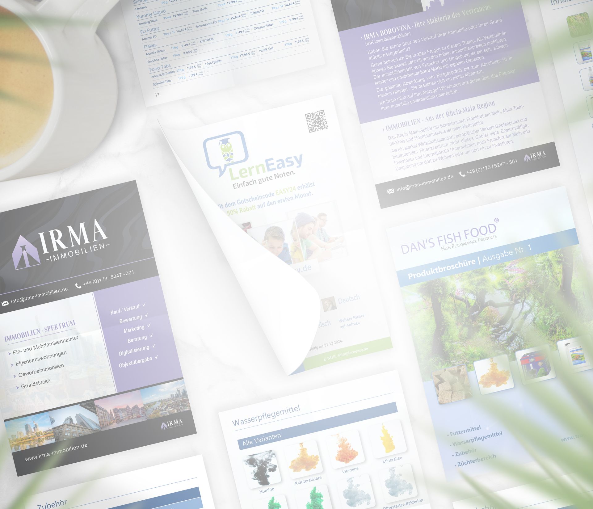 (Flyer, Visitenkarten, Broschüren, Banner, Stempel...) und